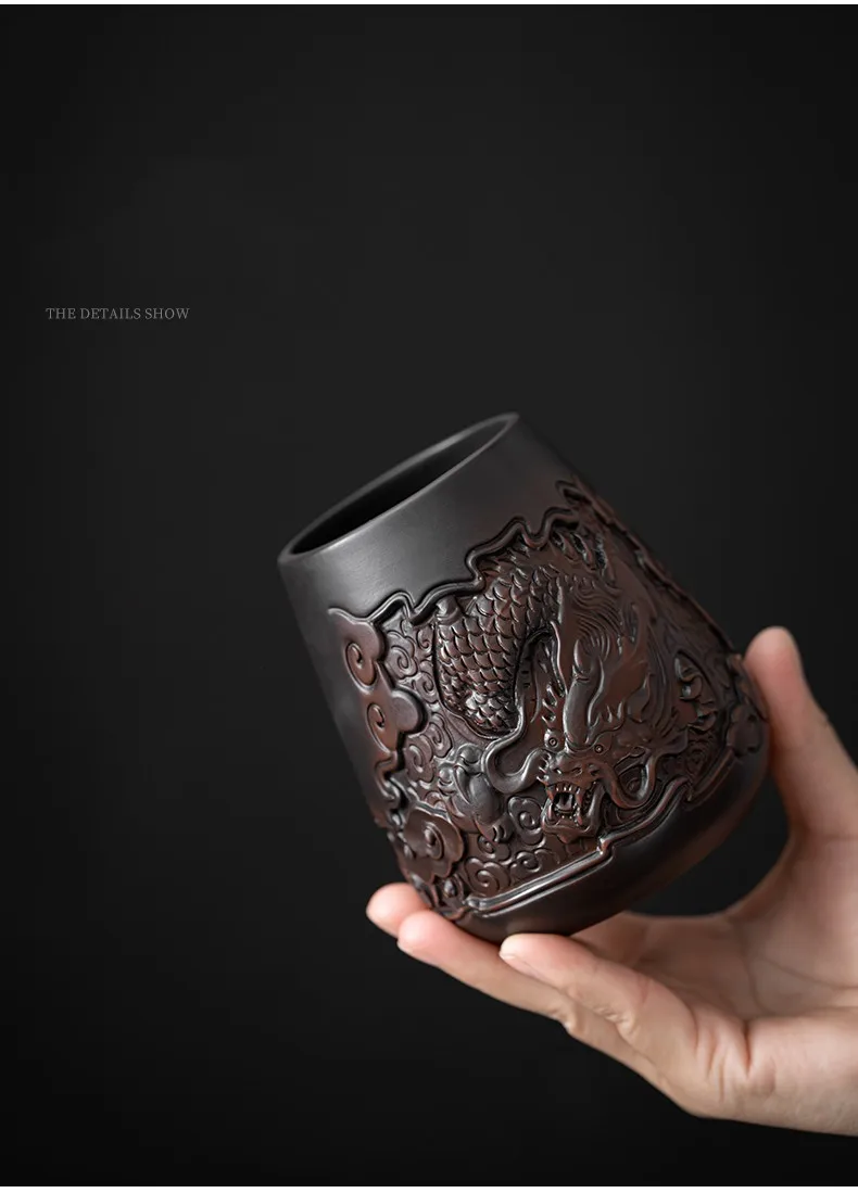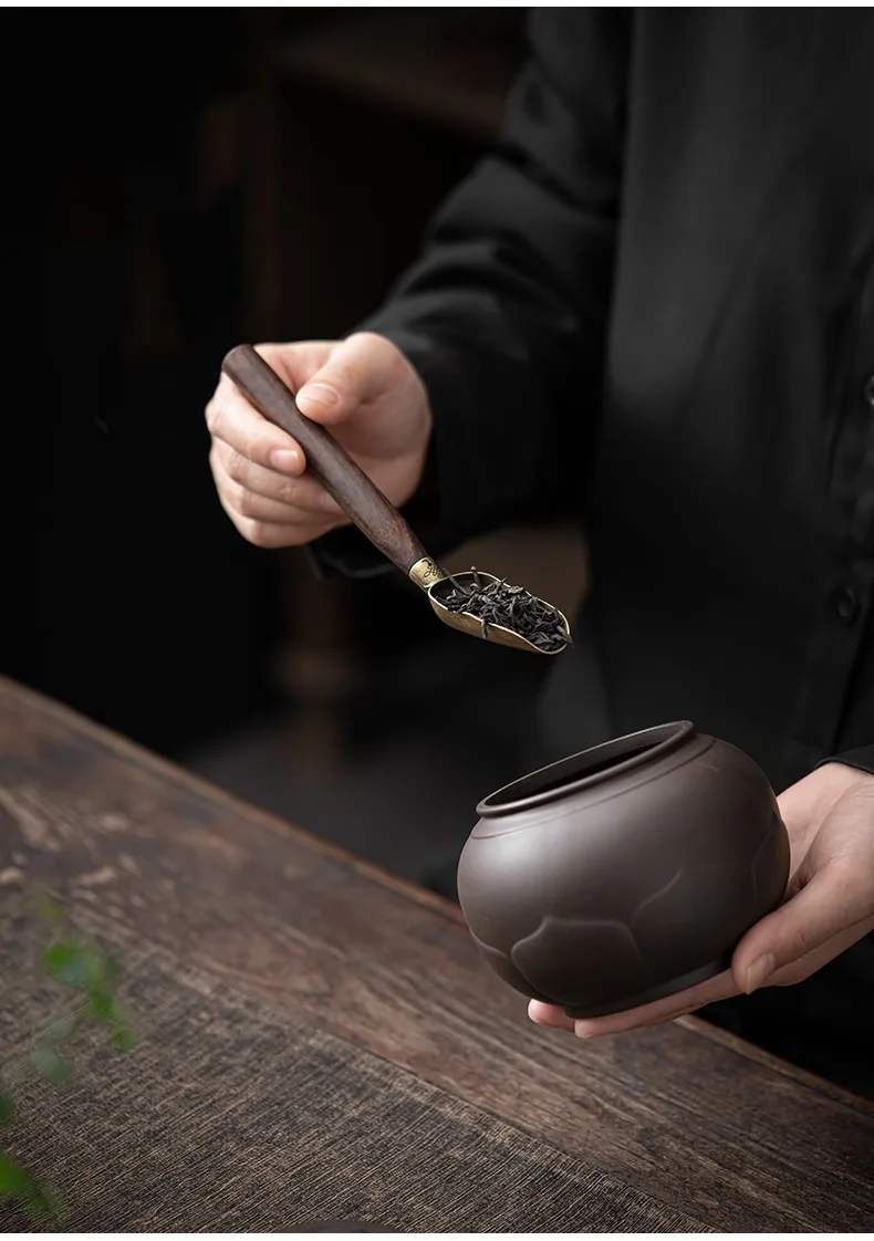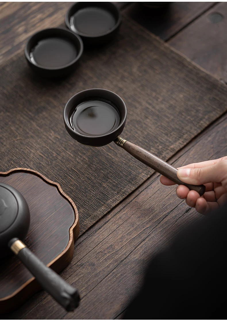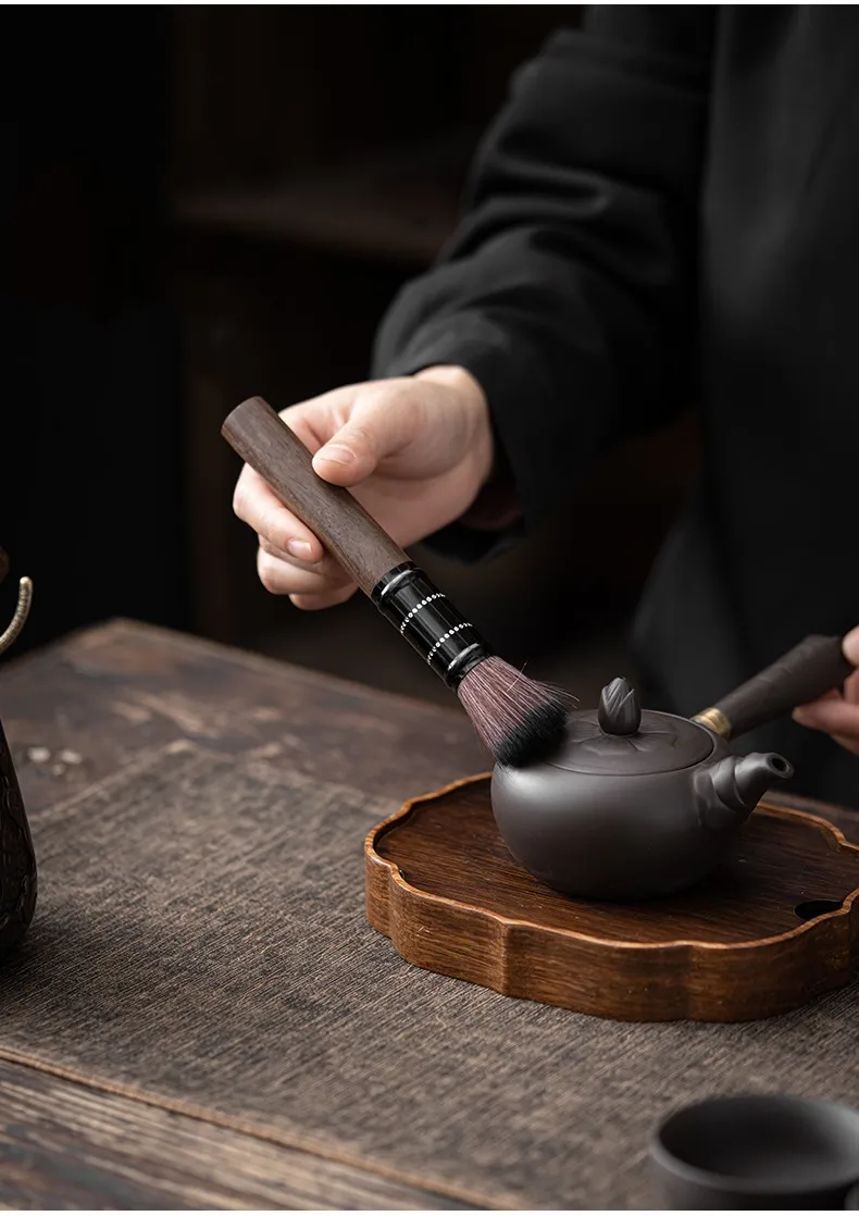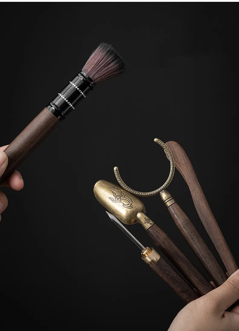 High-End Purple Pottery Tea Ceremony Six Gentlemen Hand Carving Pottery Blackwood Solid Kung Fu Tea Set Accessorie
